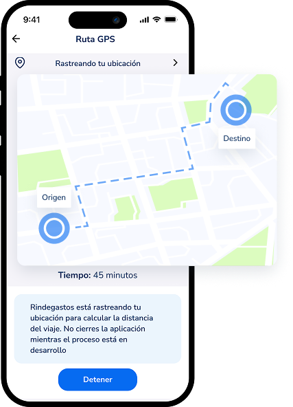 Rindegastos utiliza tecnología GPS integrada para rastrear trayectos reales. Esto te garantiza una rendición de gastos 100% transparente, donde solo se paga lo que realmente se recorrió, sin margen para manipulaciones.