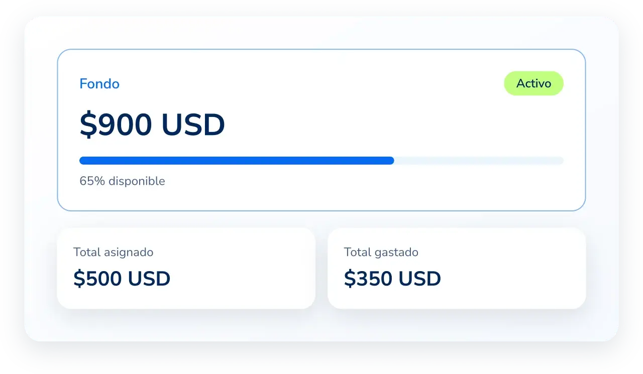 Crea, asigna y supervisa todos tus fondos desde un solo lugar. Mantén el control total de los saldos disponibles y el uso de cada caja chica en tiempo real.